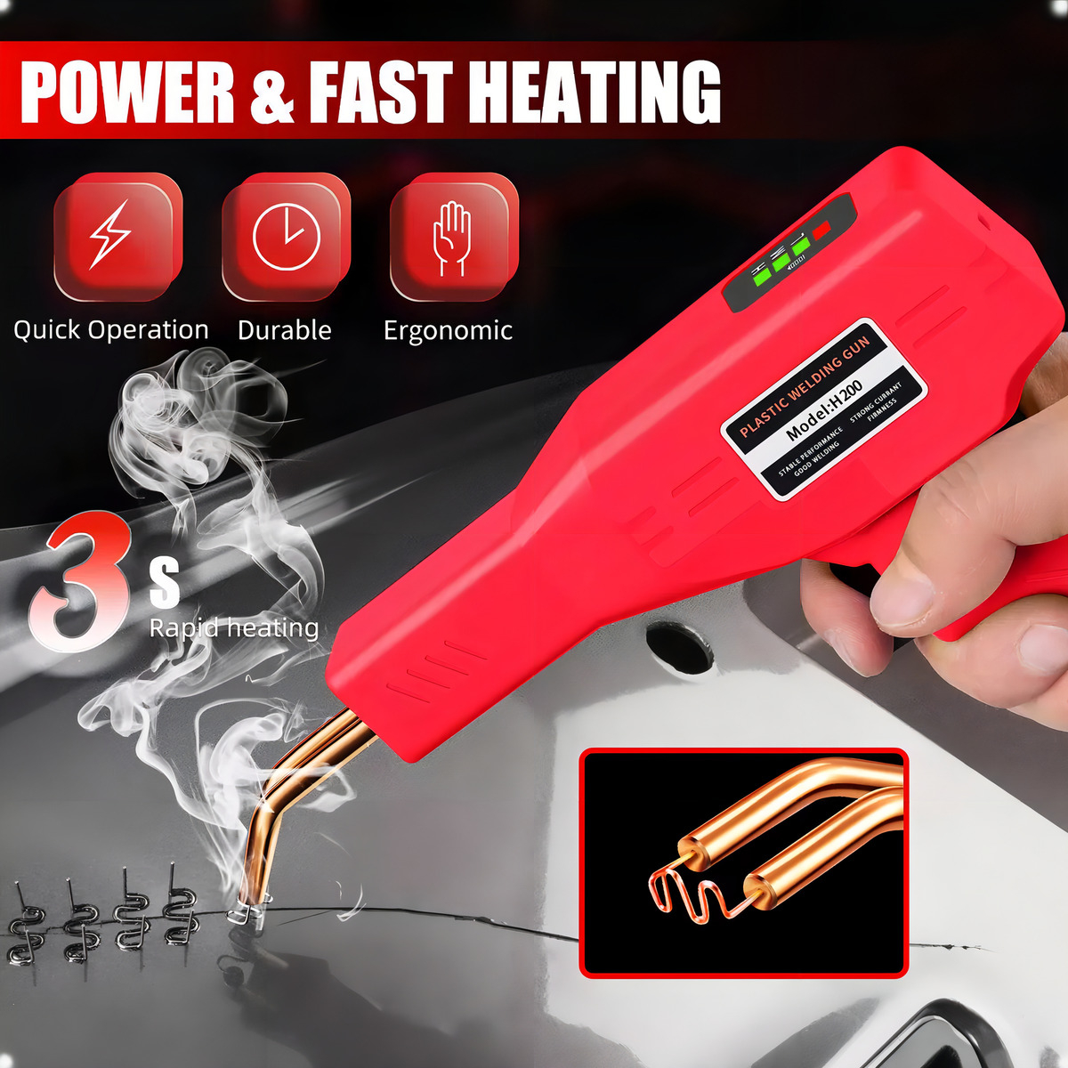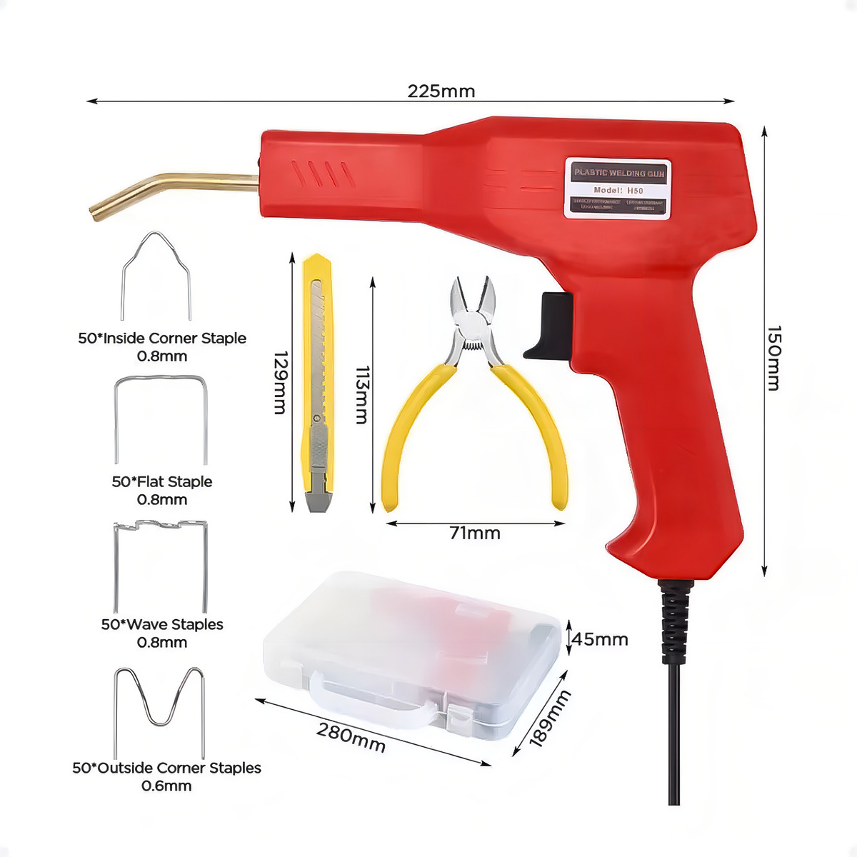 La Soldadora de Plástico Otec DW160MMA es la solución perfecta para reparar piezas plásticas de vehículos, incluyendo parachoques, molduras y otros componentes plásticos. Este kit completo, que incluye la máquina de soldadura, alicates, trincheta, maleta de transporte y una variedad de grapas, te permite realizar reparaciones de alta calidad de manera rápida, eficiente y profesional. La soldadora está diseñada para restaurar piezas rotas y prolongar su vida útil, mientras que su robustez garantiza reparaciones resistentes a choques y torsión.