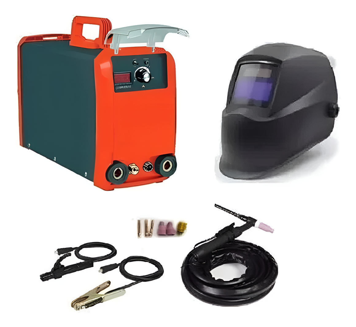 Incluye: pinza de masa, pinza porta electrodo, torcha TIG, careta de protección y boquillas.