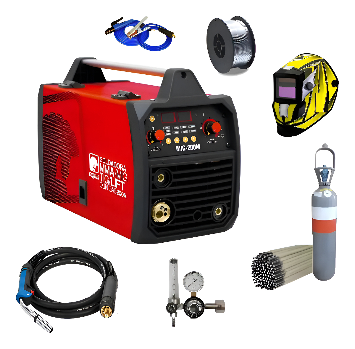 Soldadora Mig Mag Mma Tig 4en1 Flux 200a Equus + Combo cantidad