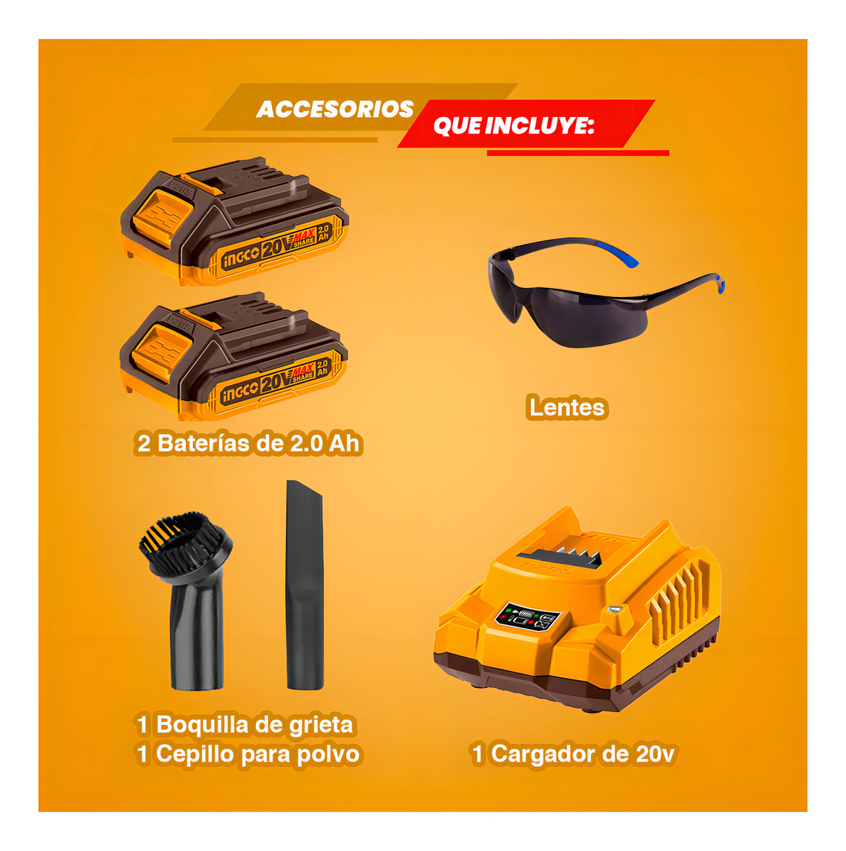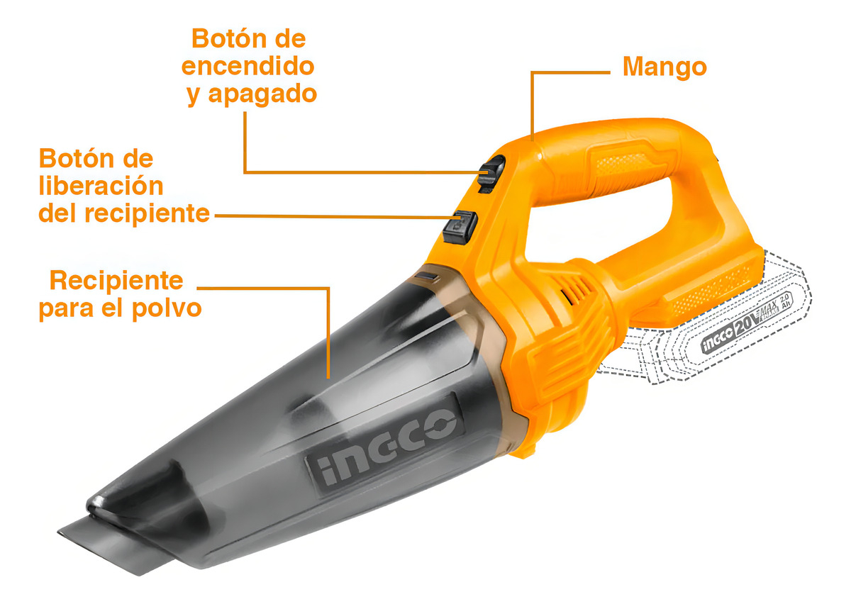 Sopladora 20v + Aspiradora Mano 20v+ 2bat Hogar Ingco Color Naranja Claro cantidad