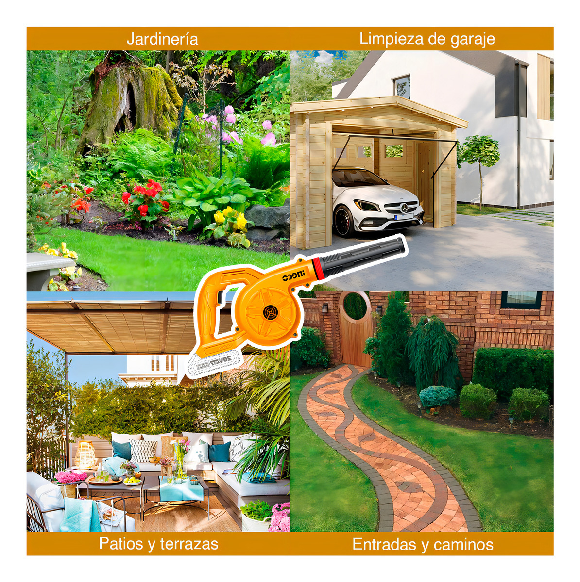 / Sopladora 20v + Aspiradora Mano 20v+ 2bat Hogar Ingco Color Naranja Claro