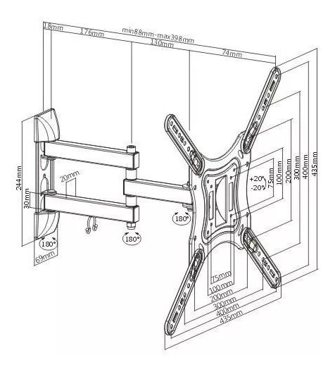 Incluye tacos fisher de 8mm y tirafondos para colocar en la pared y tres juegos de tornillos de distintos tamaños para fijar el televisor.