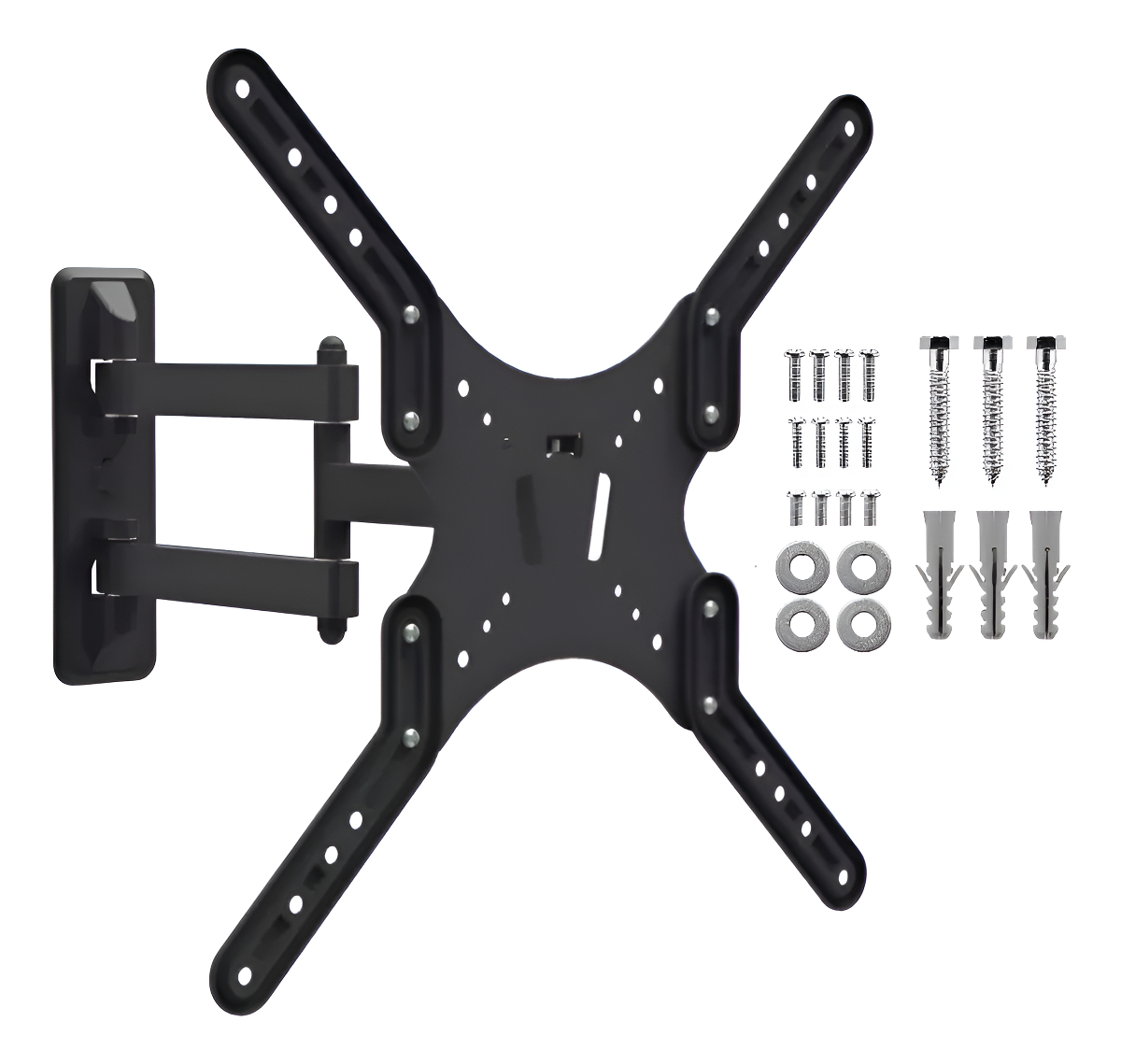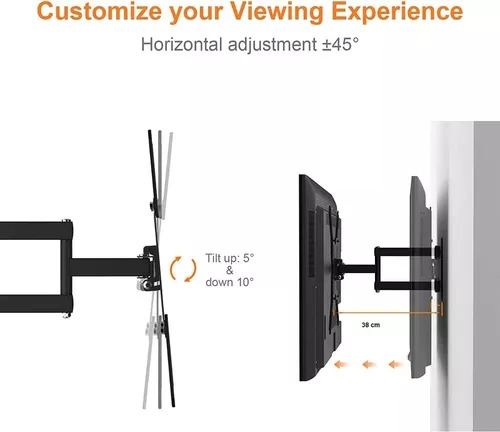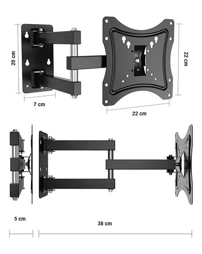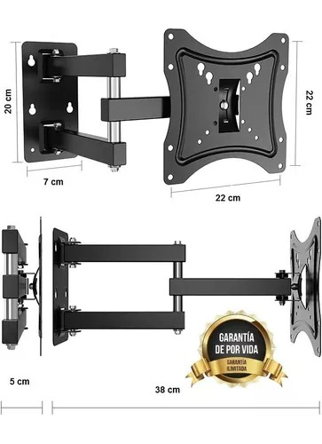 Soporte de pared para TV LED o LCD hierro fundido tratamiento anti corrosivo y pintura antiestatica negra mate con movimiento de 14 A 55″ tacos y tornillos para todas las medidas no hay que comprar mas nada para instalarlo