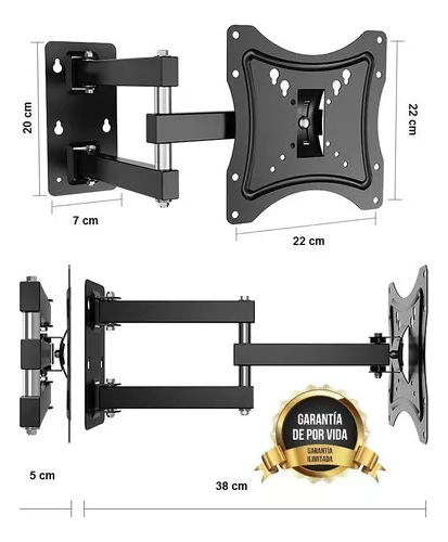Incluye barras metálicas para tv más grande con brazo articulado de 45cm de extensión. Incluye set de tornillos, tuercas y tarugos para su fácill armado e instalación