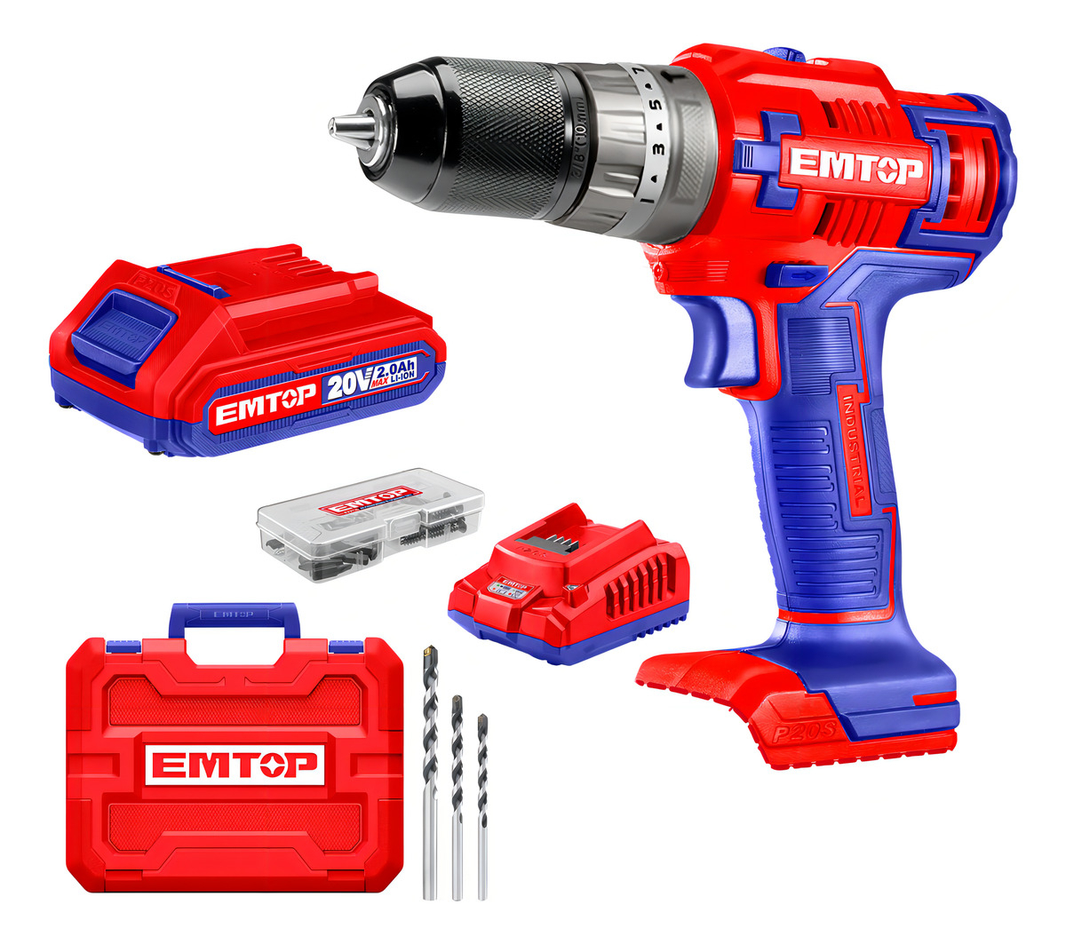 Taladro Atornillador Percutor 20v 45nm Mandril Metal Emtop