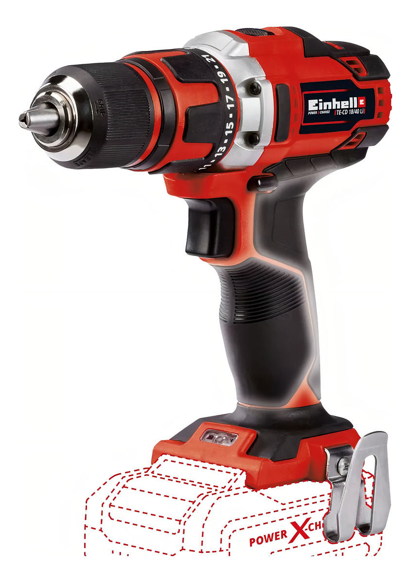 El taladro inalámbrico Einhell TE-CD 18/40 Li-Solo es un todoterreno potente y práctico para todos los trabajos en el hogar, el taller y el garaje. Al ser miembro de la familia Power X-Change, todas las baterías recargables PXC se pueden utilizar y son intercambiables en la innovadora familia de sistemas de iones de litio. Para perforaciones y atornillados potentes, tiene engranajes de dos velocidades de alto rendimiento. El control electrónico de velocidad garantiza que la herramienta se pueda ajustar al material y la aplicación en particular en todo momento. Ajustable con precisión en 21 configuraciones de par, el portabrocas de 13 mm de una sola manga sostiene el accesorio que desea usar. Para un manejo excepcionalmente fácil, tiene un diseño ergonómico y empuñadura suave. La iluminación LED ilumina las áreas oscuras para obtener resultados óptimos. La disponibilidad operativa permanente está garantizada por la tecnología de iones de litio con cero autodescarga. La batería recargable y el cargador están disponibles por separado, por ejemplo, como un práctico juego de iniciación PXC en diferentes niveles de rendimiento.