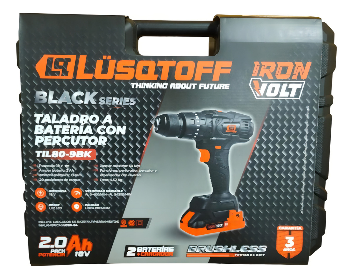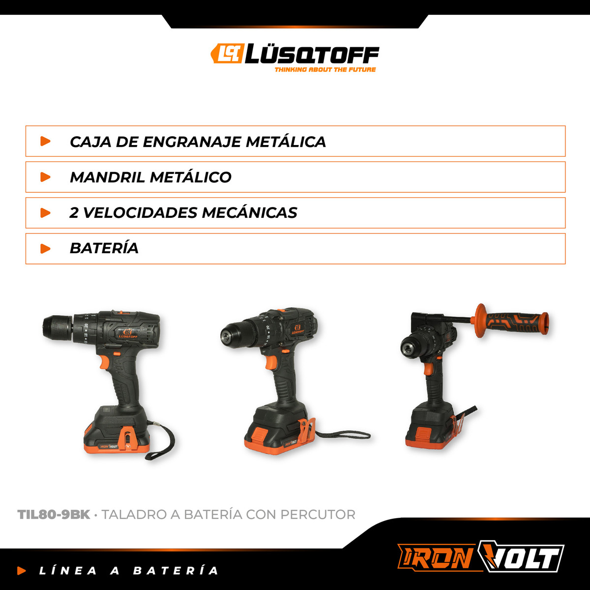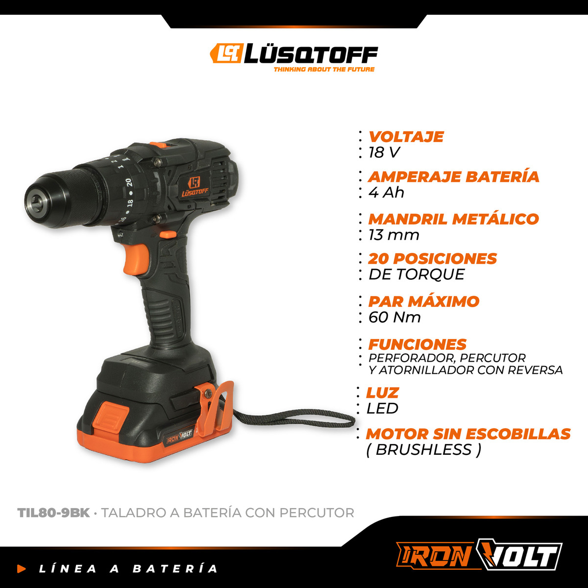 Taladro Atornillador Percutor 13mm Lüsqtoff 60nm 2 Bat Color Negro Frecuencia 50hz