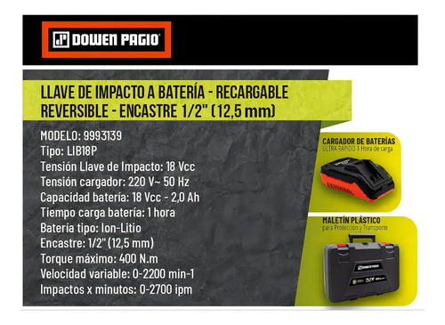Taladro Eléctrico 18v Dowen Pagio 9993139 Naranja