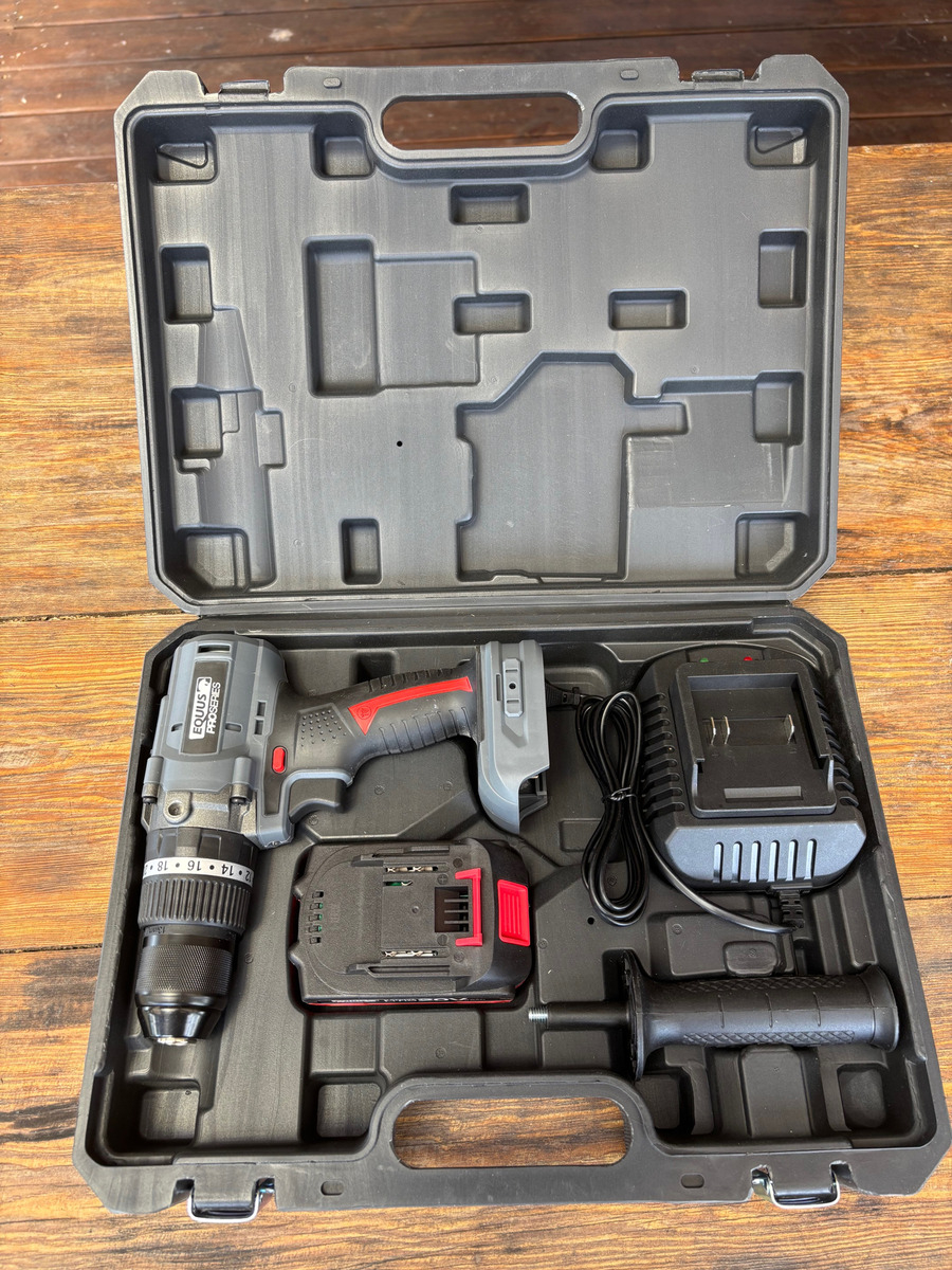 Descubre el Taladro 20v Equus Pro Series, una herramienta de alta eficiencia diseñada para satisfacer todas tus necesidades de perforación y atornillado. Este taladro de impacto inalámbrico, sin carbones, es compatible con el sistema Makita Foot, lo que lo convierte en una opción versátil para los profesionales y aficionados al bricolaje. Con un tamaño de mandril de 13 mm de metal, ofrece un torque máximo de 120 N.m y una velocidad sin carga de hasta 2000 RPM, permitiendo un rendimiento excepcional en diversas aplicaciones. Su diseño incluye un mango auxiliar para mayor control y comodidad, y cuenta con una batería de litio de 20 V y 2.0 Ah, asegurando una larga duración. Además, su tecnología de motor con escobillas y funciones como reversa, percutor y destornillador, junto con su empuñadura soft grip y velocidad variable, garantizan una experiencia de uso superior. ¡Potencia y precisión en cada proyecto!