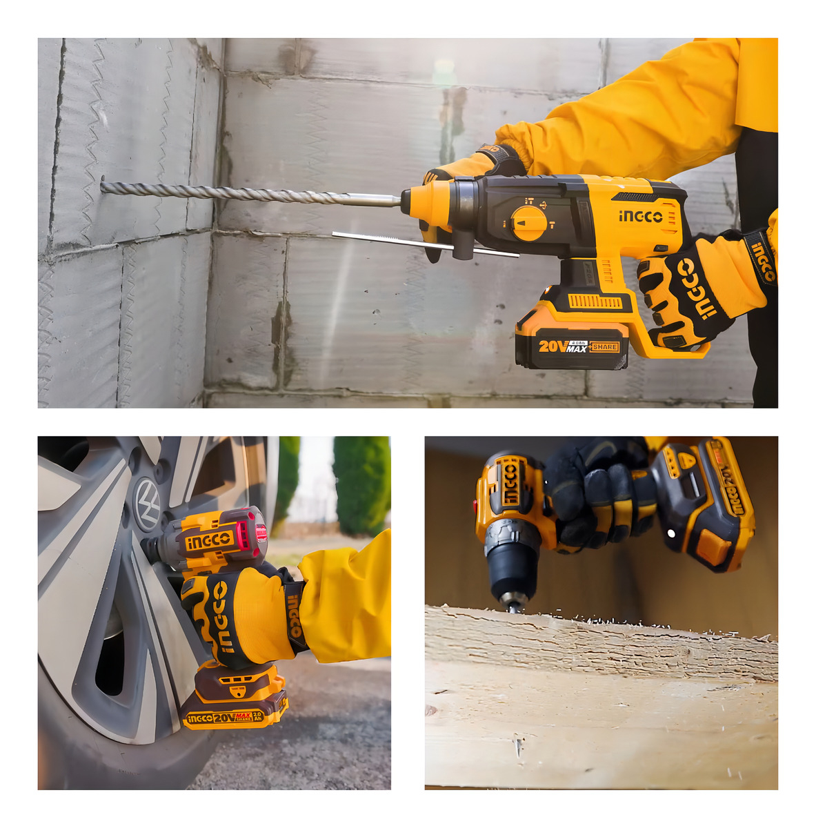 Taladro + Llave De Impacto + Amoladora + Rotomartillo Ingco Color Amarillo