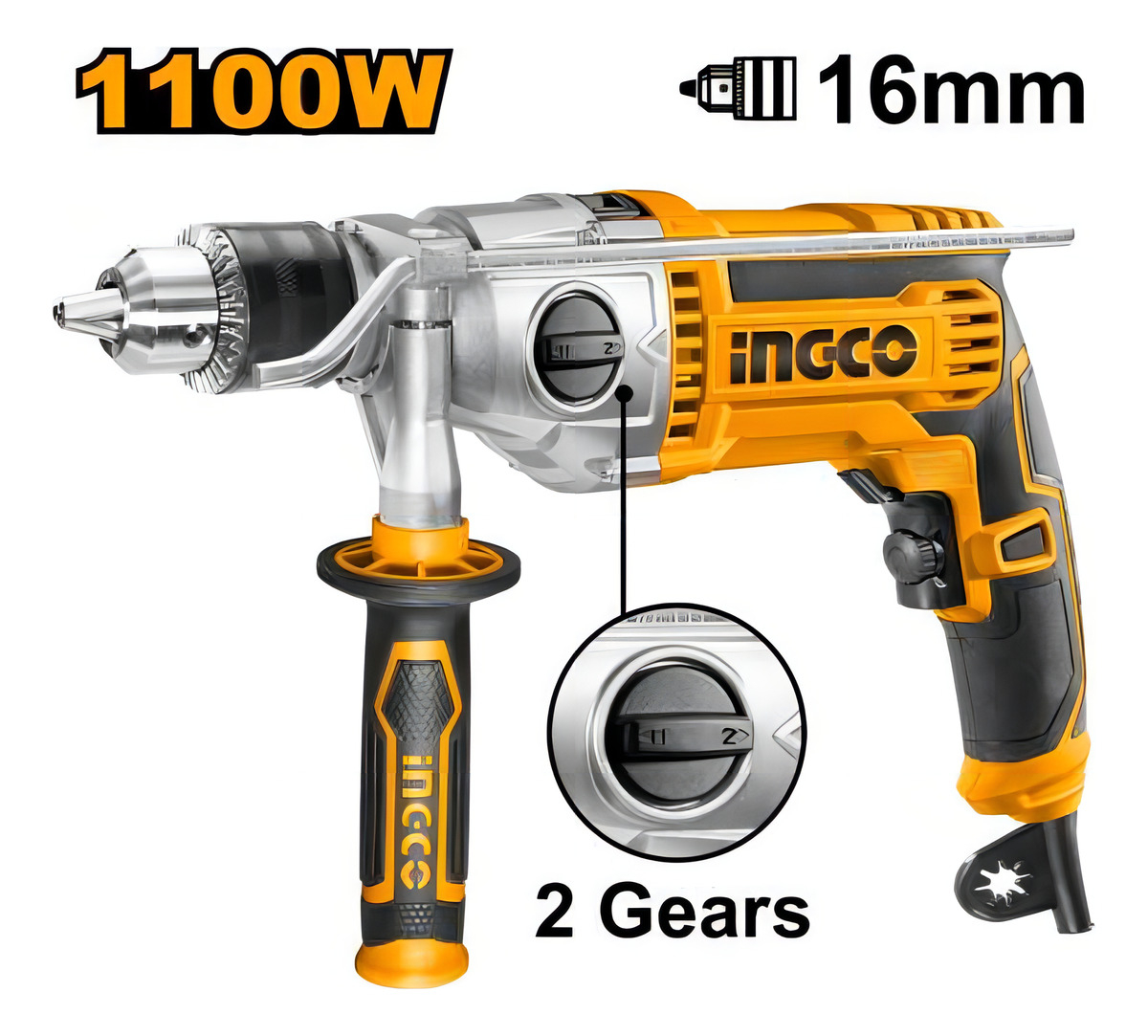 TALADRO PERCUTOR 16MM 1100W 2 VEL INGCO ID211008