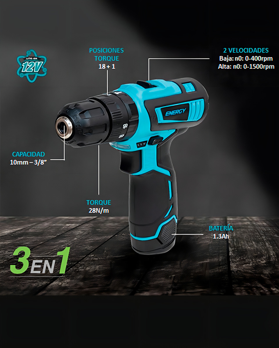 Con el taladro eléctrico Energy DDI10/2/12 C1 podrás realizar múltiples tareas en diversas superficies de un modo práctico y sencillo.