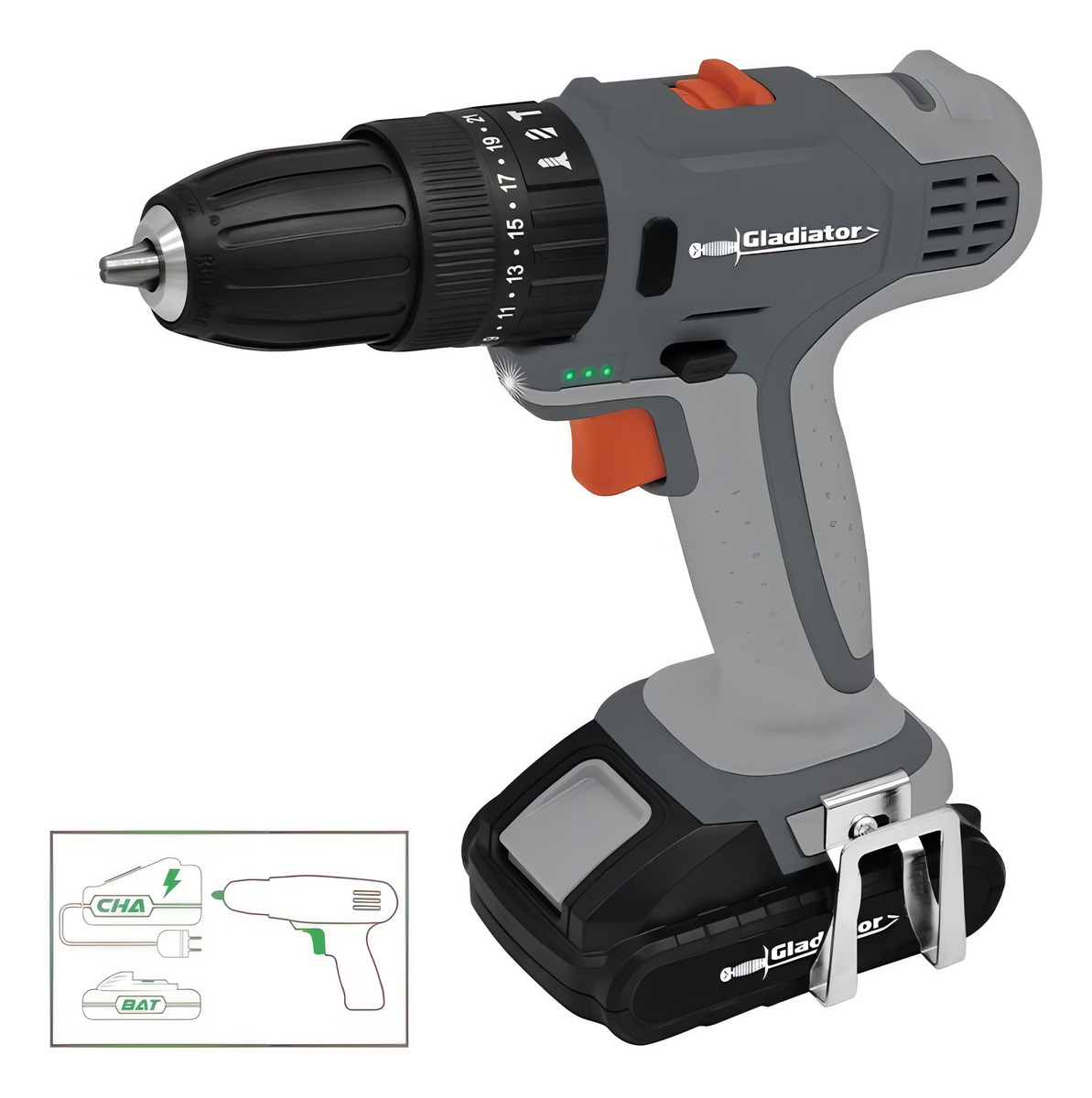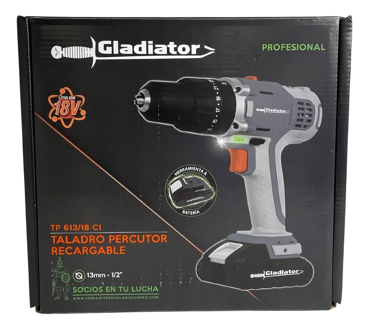 Taladro Percutor Atornillador Inalámbrico De 13mm Gladiator Tp 613/18 C1 + 1 Batería De 1.5ah + Accesorio Con Caja De Cartón 50hz/60hz