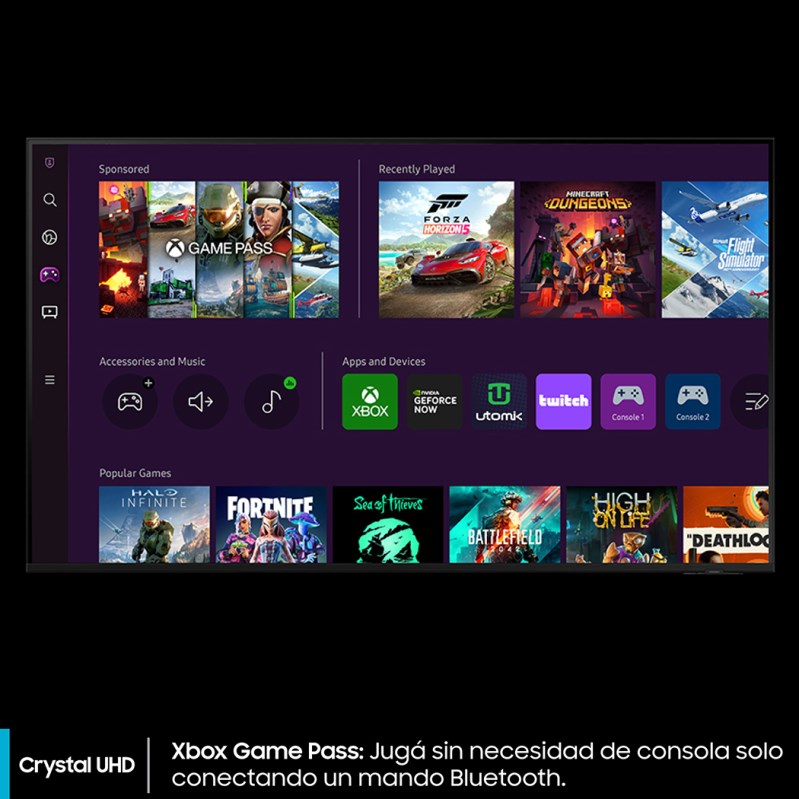 Con el Smart TV UN55CU7000 vas a acceder a las aplicaciones en las que se encuentran tus contenidos favoritos. Además, podés navegar por Internet, interactuar en redes sociales y divertirte con videojuegos.