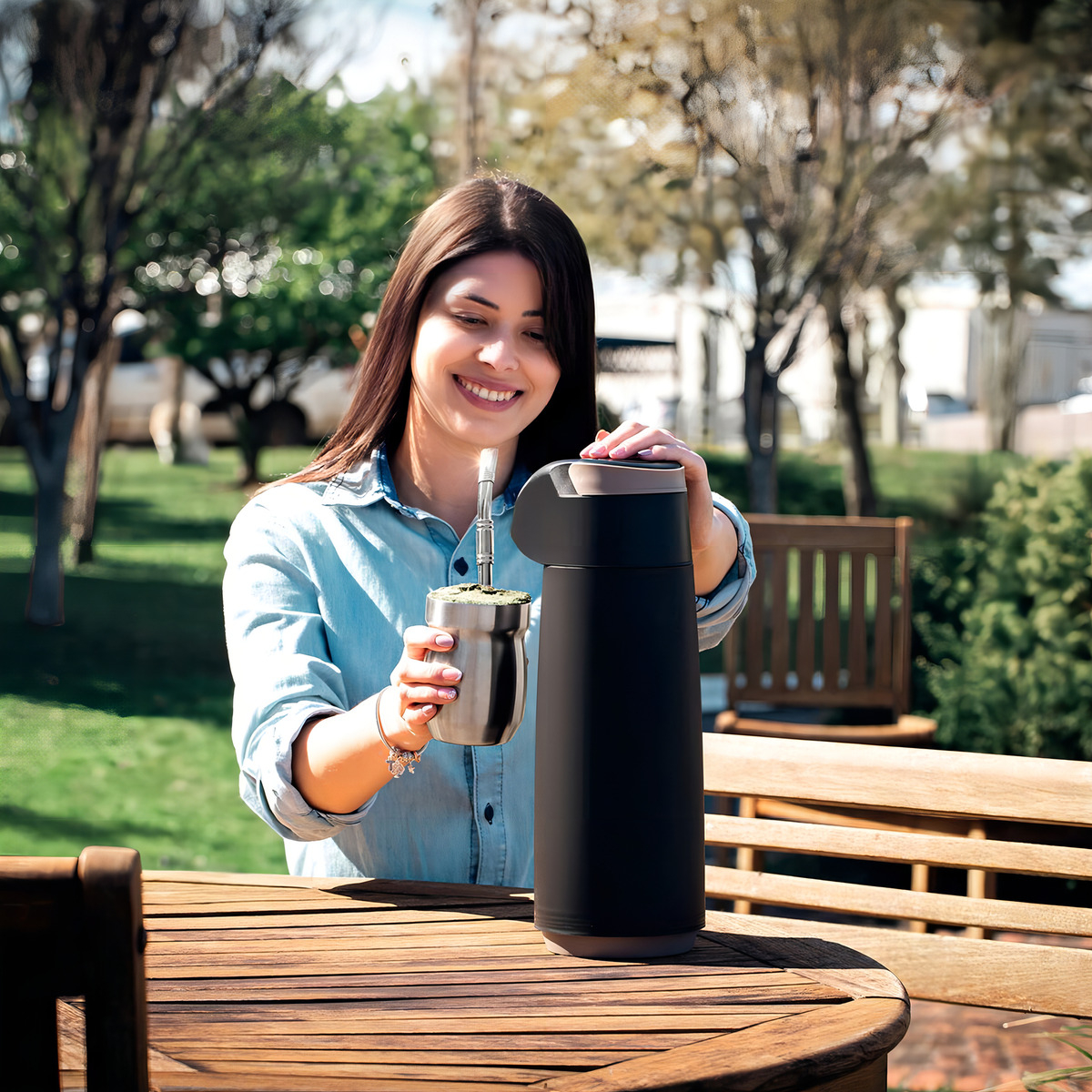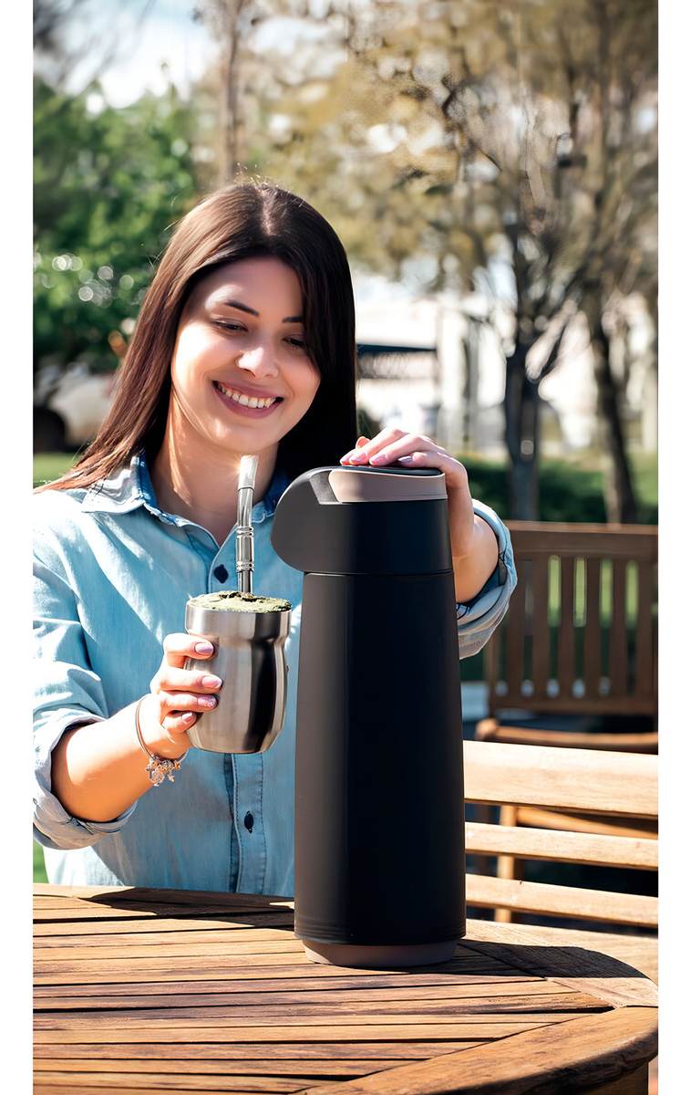 Experimente la calidad de este termo Tramontina con el que podrá disfrutar de cualquier infusión. Llévalo donde quieras y prepara tu café, té o jugo rápidamente.