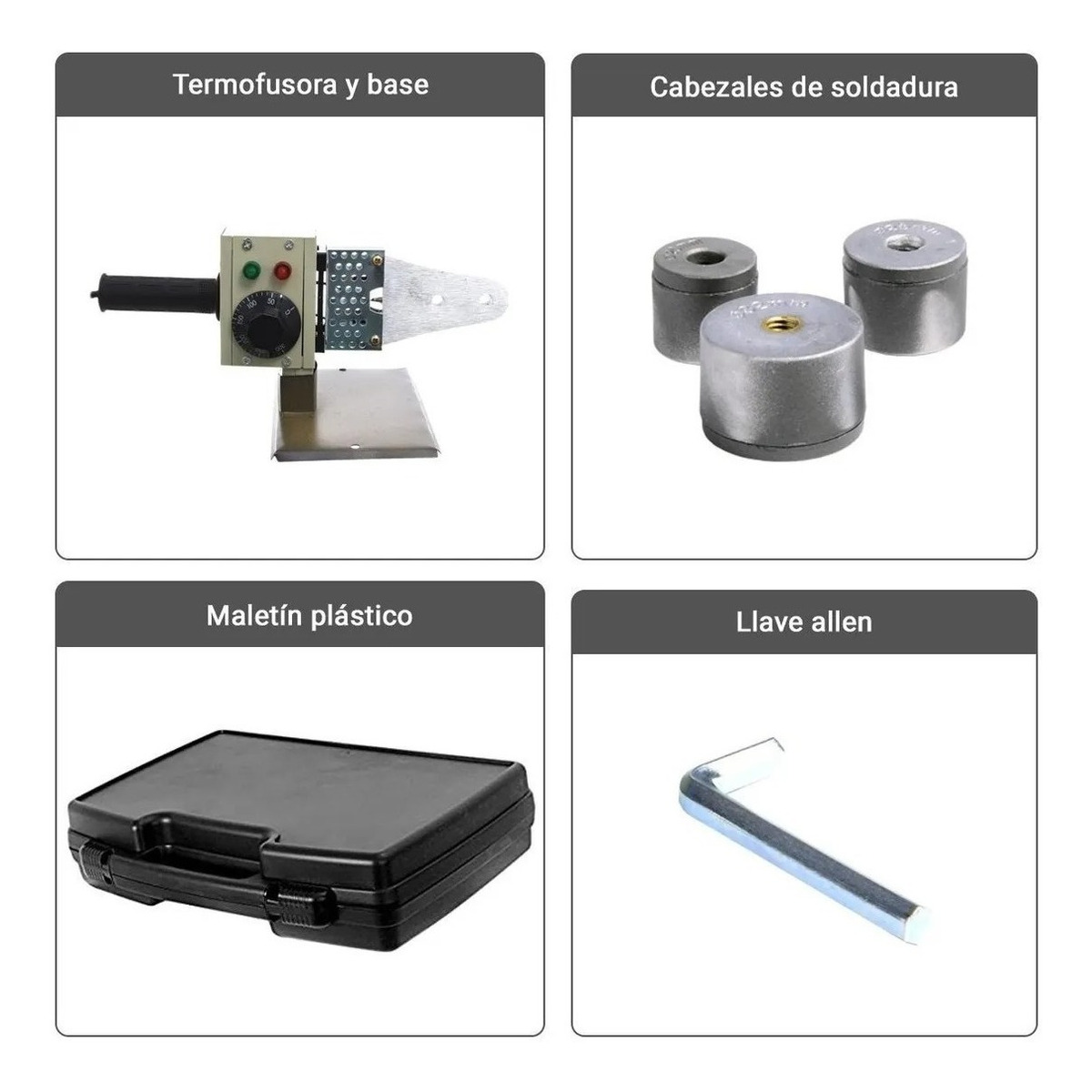 • Maletín plástico negro: 3 boquillas (20, 25 y 32 mm) / Soporte base