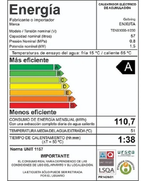 TERMOTANQUE ENXUTA 60 Lts ( 57 litros Neto )