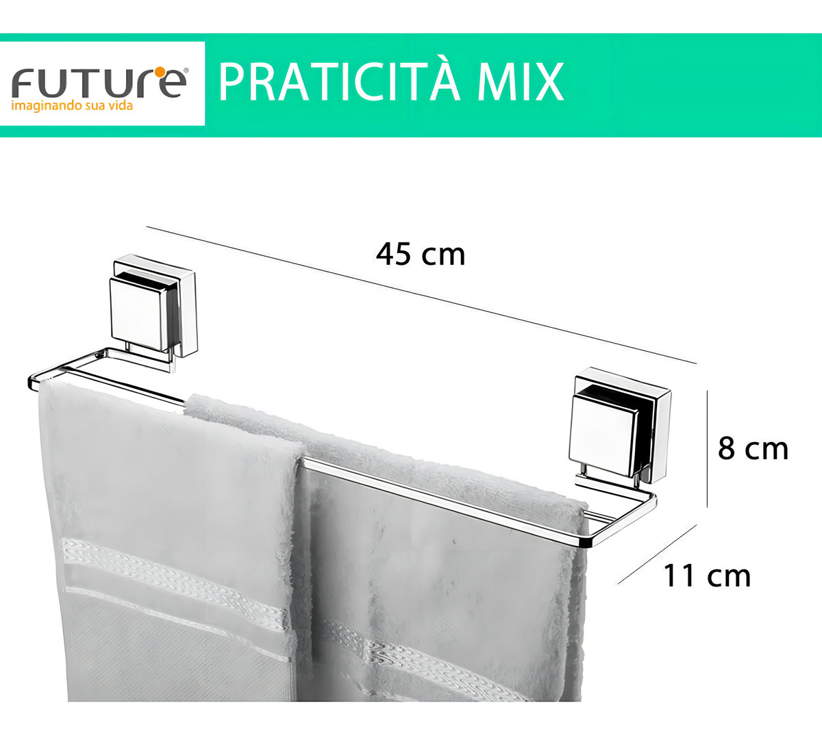 / Toallero Doble De 45 Cm, Fijación Future Heavy Duty Con Ventosa