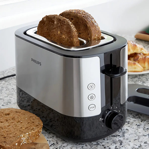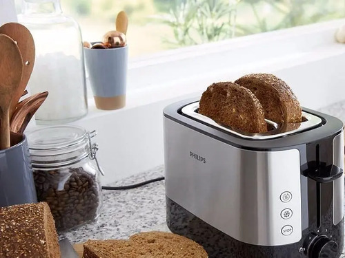 El mecanismo autocentrado permite centrar perfectamente cada rebanada para que el tostado sea uniforme, sin importar el grosor.