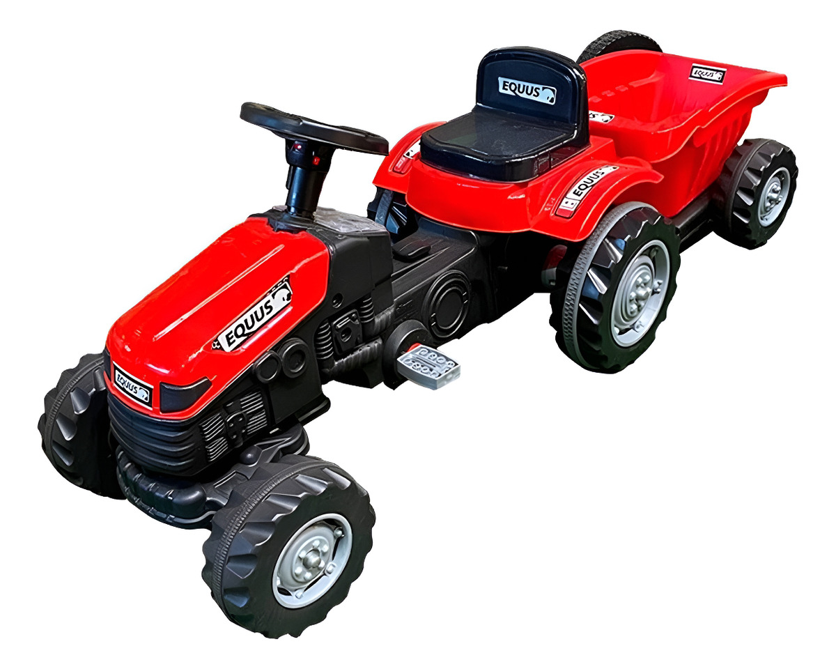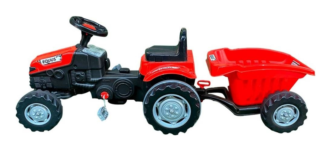 Se trata de un tractor equipado con pedales y asiento ajustable.