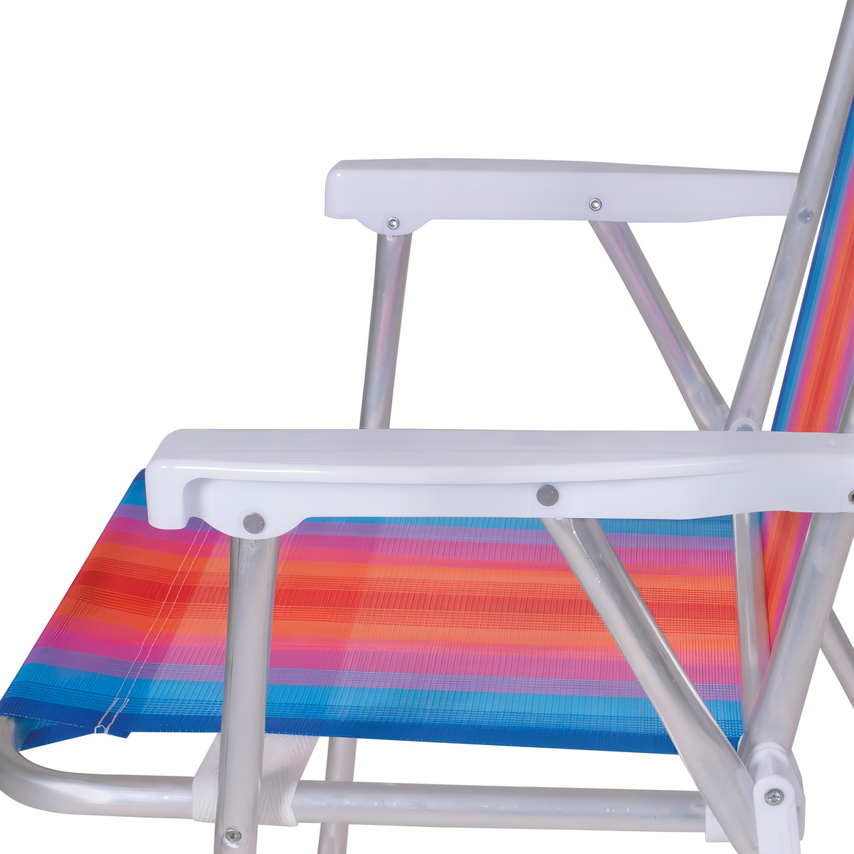La trona Mor de aluminio rojo y azul Ref.2101 es perfecta para quienes buscan comodidad y practicidad durante su tiempo libre en la playa. Con un diseño plegable, se puede transportar y almacenar fácilmente, ocupando poco espacio. Su estructura de aluminio garantiza durabilidad y resistencia, mientras que la combinación de colores rojo y azul aporta un toque de estilo y personalidad. Ya sea para relajarse junto al mar o disfrutar de un día soleado en la piscina, esta silla es la elección ideal. Disfrute de sus momentos de descanso con toda la comodidad que ofrece la trona Mor Red and Blue Aluminum Ref.2101.