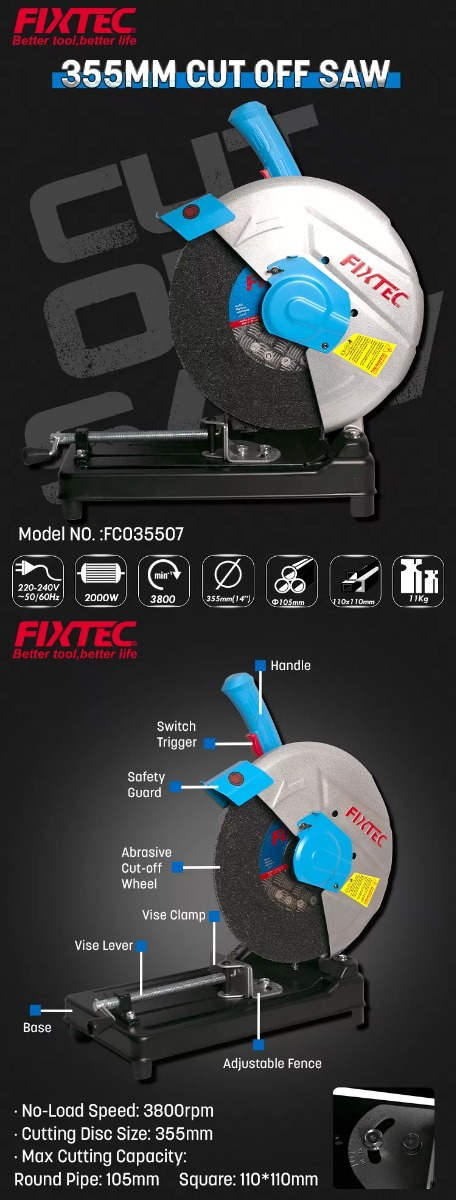 Tronzadora Cortadora Metal 14» 355mm Fixtec 2000w + 1 Disco
