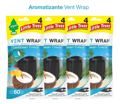 Vent Wrap Aromatizante Para Auto 4 Piezas Aromas Caribbean Colada Amarillo