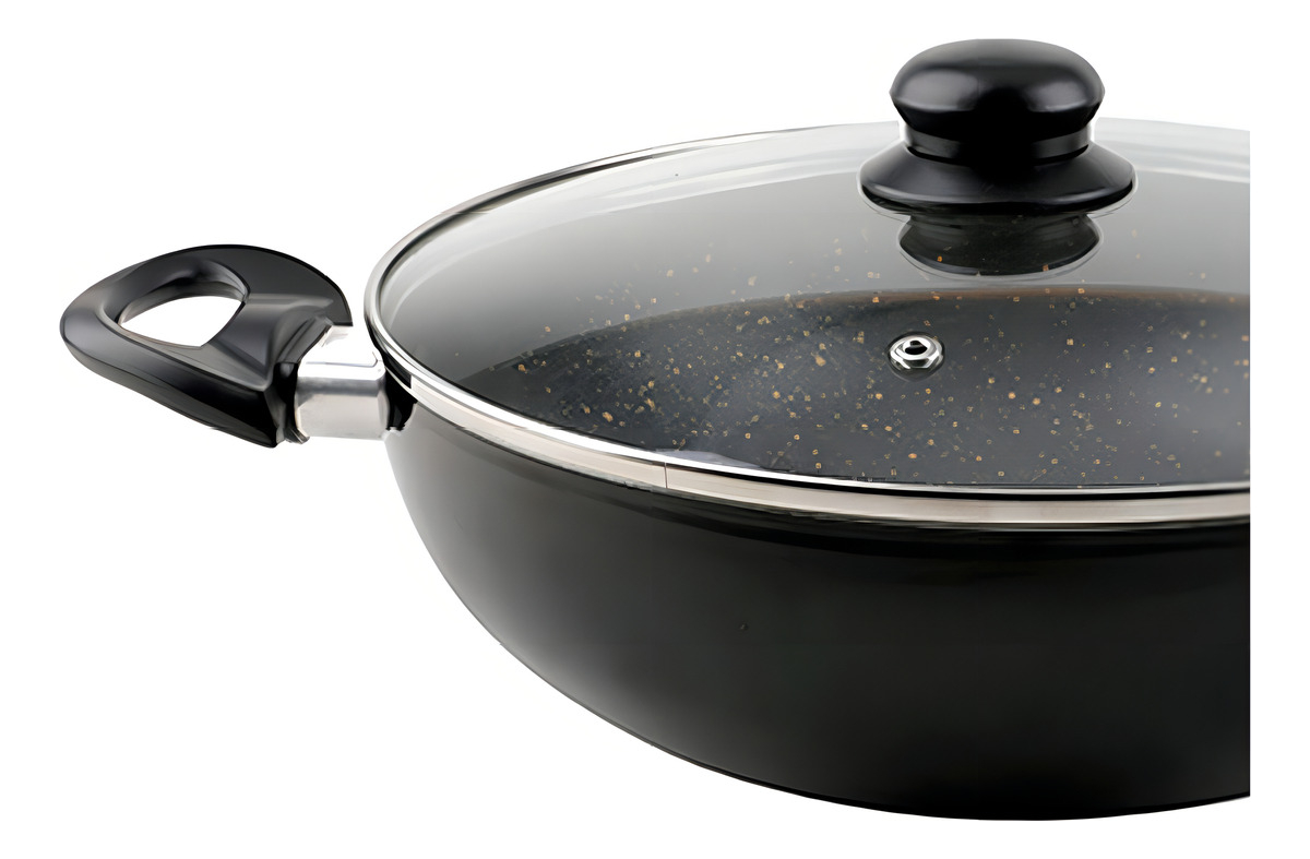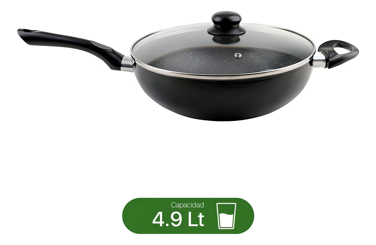 Lleva tu cocina al siguiente nivel con el Wok Cuori Modelo Black, diseñado para los amantes de la cocina gourmet. Este wok no solo es práctico, sino que su elegante diseño en negro complementará perfectamente tu cocina. Su superficie antiadherente garantiza que los alimentos se cocinen de manera uniforme y sin pegarse, ideal para saltear, freír o preparar deliciosas comidas al estilo asiático.