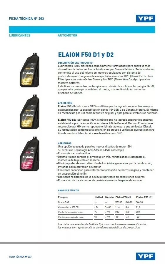 Lubricante SINTÉTICO, SAE OW20 supera las exigencias de las últimas tecnologías de motores compactos a nafta de mayor potencia que requieran la especificación Dexos 1, D1 de GM generación 2 ,incorpora TAS –