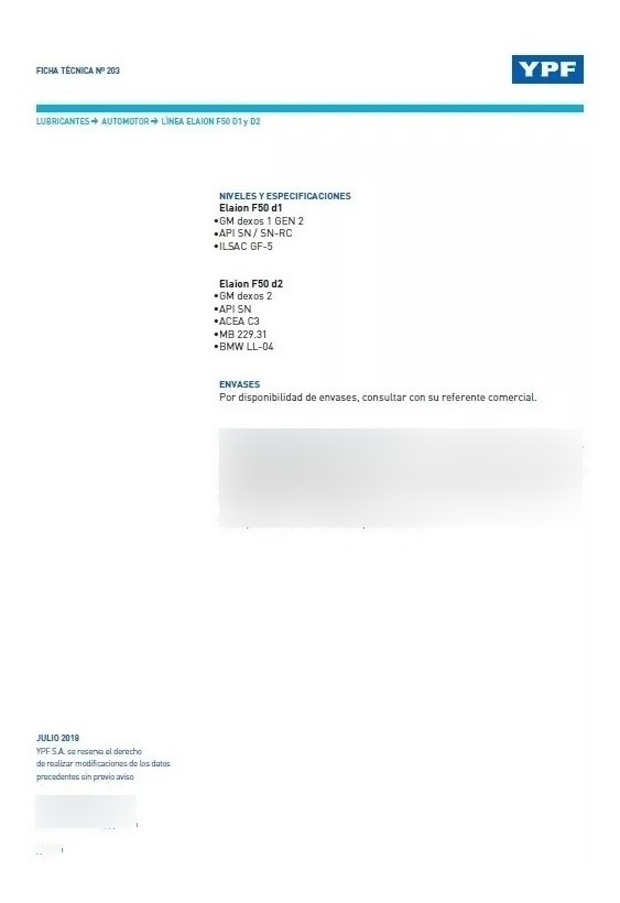 Ypf Aceite Sintetico F50 Dexos I 0w20 Elaion Envase 1 Litro.